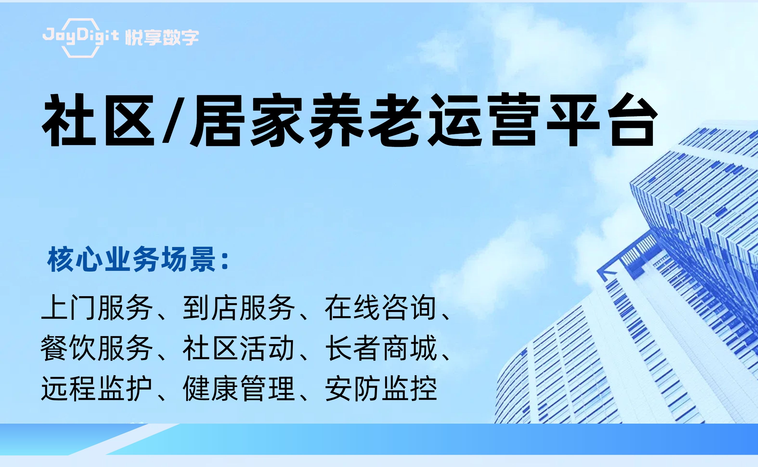 北京悅享數字科技有限公司(JoyDigit?,簡稱悅享數字?)作為養老行業數字化轉型的引領者,以“數字驅動健康?,智慧賦能養老?”為愿景,以iSpeed作為養老行業數字化轉型的標準,通過融合大數據、人工智能、物聯網、區塊鏈和移動互聯等創新技術,打造了領先的數字化養老解決方案-悅享養老數字化平臺(JoyDigit NexSight Platform),端到端覆蓋了數字化渠道與銷售、業務流程標準化與智...